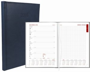 Kalendarz książkowy 2026 A4 TYGODNIOWY Z NOTESEM papier biały drukowane registry oprawa VIVELLA EXCLUSIVE granatowa