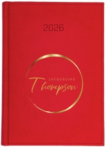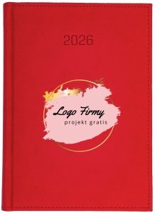 Kalendarz książkowy 2026 A4 TYGODNIOWY Z NOTESEM papier biały drukowane registry oprawa VIVELLA EXCLUSIVE czerwona