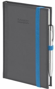 Kalendarz nauczyciela 2026/2027 A5 dzienny zamykana na gumkę NEBRASKA szara (gumki niebieskie) Z DŁUGOPISEM