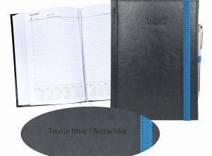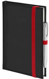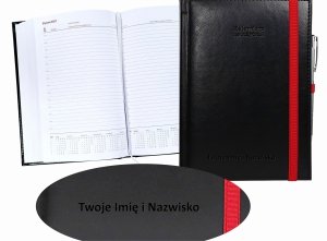 Kalendarz nauczyciela 2026/2027 A5 dzienny zamykana na gumkę NEBRASKA czarna (gumki czerwone) Z DŁUGOPISEM