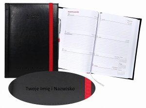 Kalendarz nauczyciela 2026/2027 A5 dzienny zamykana na gumkę NEBRASKA czarna (gumki czerwone) Z DŁUGOPISEM