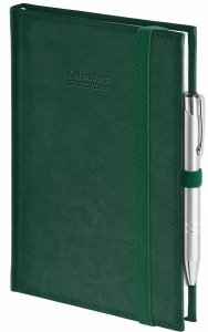 Kalendarz nauczyciela 2026/2027 A5 dzienny zamykana na gumkę NEBRASKA zielona (gumki zielone) Z DŁUGOPISEM