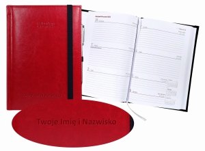 Kalendarz nauczyciela 2026/2027 A5 dzienny zamykana na gumkę NEBRASKA czerwona (gumki granatowe) Z DŁUGOPISEM