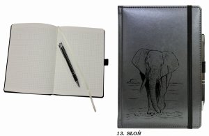 Notes A5 papier chamois w kratkę oprawa NEBRASKA LUX grafitowa z zamykaniem na gumkę i mocowaniem na długopis