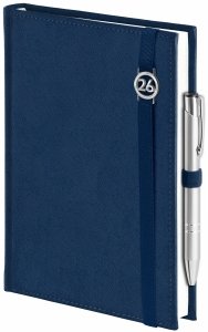 Kalendarz książkowy 2026 B5 dzienny papier biały drukowane registry oprawa ALUMINIUM granatowa