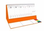Elegancki i bardzo praktyczny kalendarz biurkowy na sztywnej podstawce. Kalendarium w układzie 3-miesięcznym, z miejscem na notatki, z zaznaczonymi imieninami, świętami oraz numeracją tygodni.